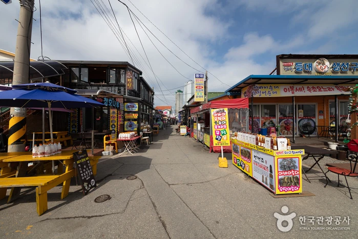 속초 여행의 필수 코스로 꼽히는 속초관광수산시장은 없는 것 없이 다 있는 만물상 같은 곳이다. 지하 1층, 지상 2층 규모의 큰 상가 건물과 전문화된 골목 시장들이 어우러져 볼거리를 더한다. 상가 건물에는 의류와 생활용품, 잡화점을 비롯해 농협 하나로마트가 입점해 있어 다양한 상품들을 구매할 수 있다. 또한 지하에 회센터가 있어 싱싱한 활어와 해산물을 저렴하게 맛볼 수 있다. (자료출처 : 대한민국 구석구석 - korean.visitkorea.or.kr) 위치 : 펜션에서 차량으로 약 9분, 2.3km